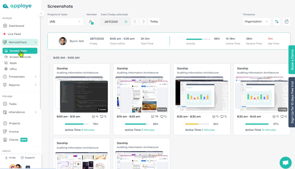 • Many time trackers offer every type of insight an organization may need to measure work output and productivity without taking screenshots