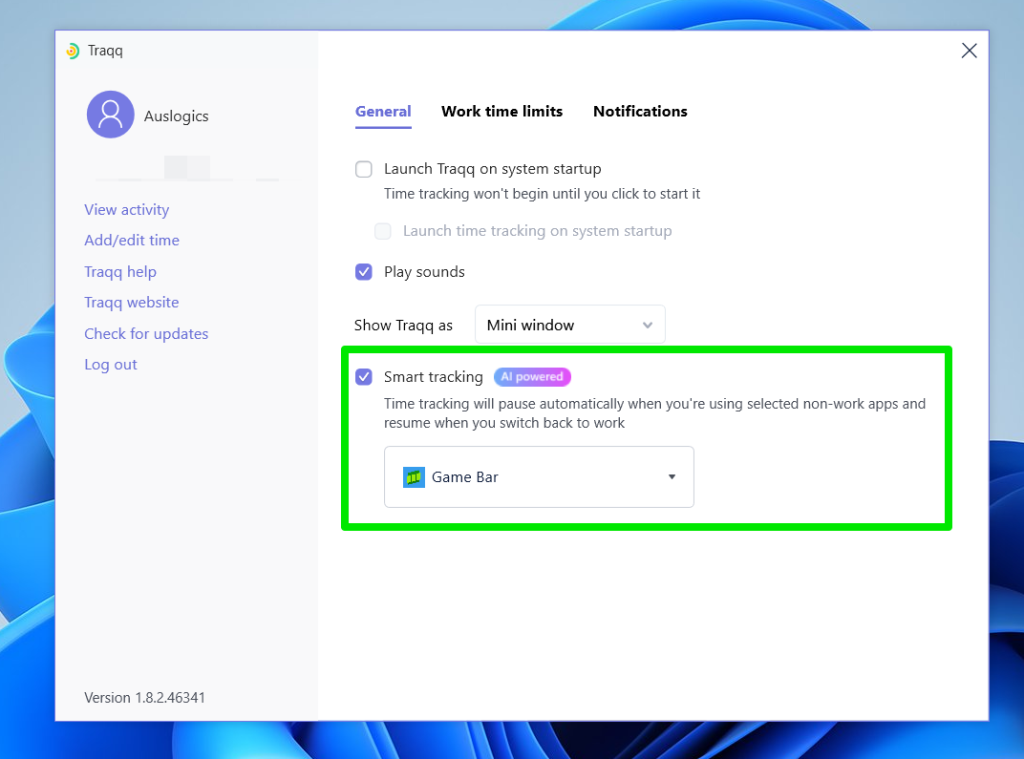 Workers can also use Traqq’s manual stop-start button and set it to automatically pause or resume depending on the foreground app.