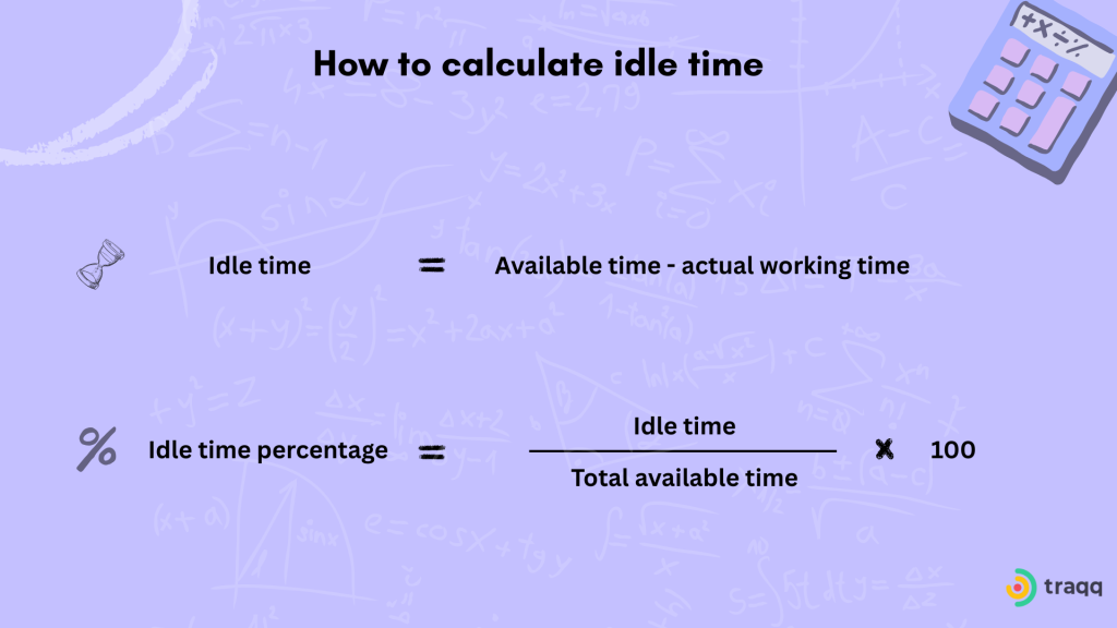 Idle time is the period employees spend not working because they are waiting for something or someone. It is the difference between total available time and actual working time. Here’s the formula to get specific numbers: