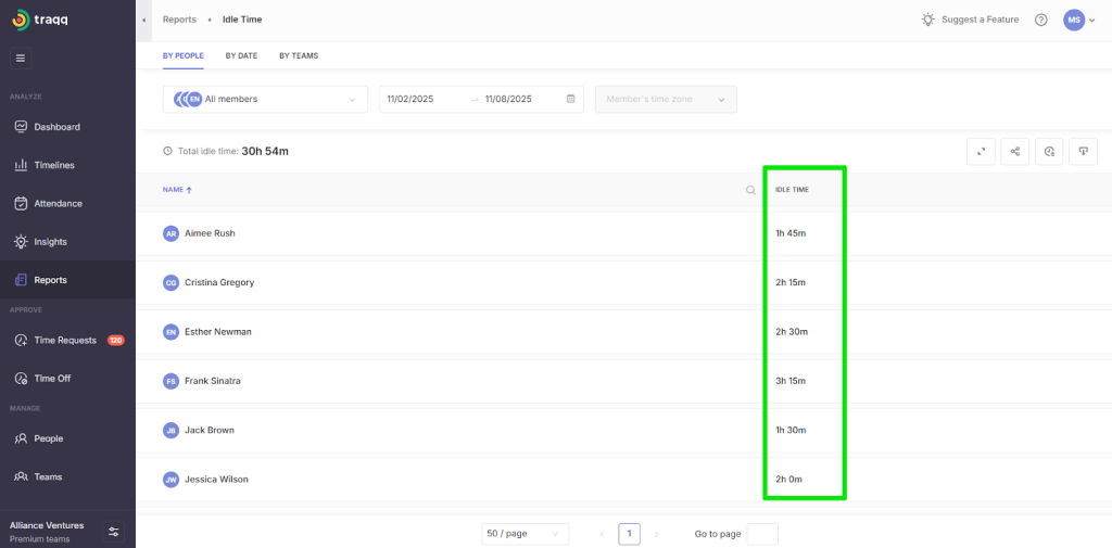 Go to the tool’s Reports page and select the Idle Time option to see your team’s wait times. From here, you can trace the root causes. They could be employees waiting for approvals or handoffs, which you can automate to claw back valuable billable hours.