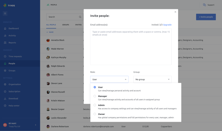 If you are an Admin or Owner, you can assign your teammates’ roles when inviting them: